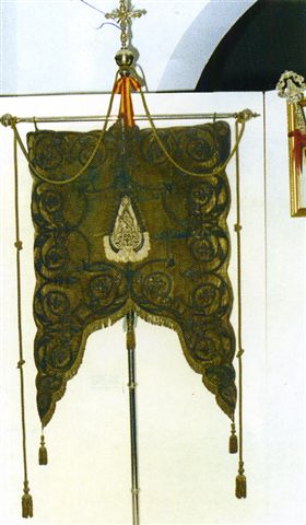 Se confecciono un Simpecado de terciopelo verde con adornos dorados y una estampa de la Virgen en el centro según parece este simpecado se hizo en Rociana.