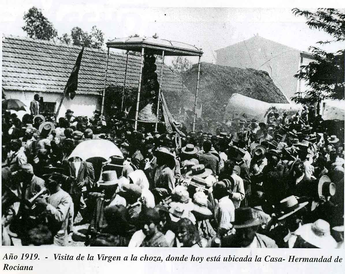 En los primeros años del siglo XX ya era muy nutrido el numero de de Rocianeros que asistían ala Romería del Rocío y en mil novecientos diez y siete un grupo de ellos queriendo propagar la devoción a la Virgen del Rocío en nuestro pueblo y aconsejados de un grupo de amigos de Almonte, componentes de la junta de gobierno de la Hermandad almonteña, decidieron organizar una Hermandad del Rocío en Rociana filial de la de Almonte.