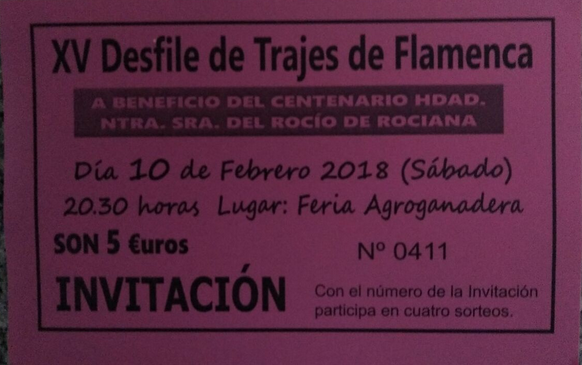 Una novedad interesante para esta edición es que, con el tiquet de la entrada, se participará en el sorteo de tres juegos de complementos y una falda flamenca. Cuatro premios que cualquiera de los asistentes puede tener la suerte de conseguir, además de pasar una tarde-noche muy flamenca y rociera de la mano de la Hermandad del Rocío de Rociana en el marco incomparable de la Feria Agroganadera y Comercial «Comarca de Doñana».